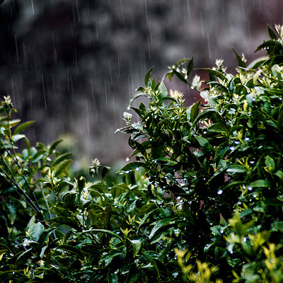 À espera que a chuva abrandasse para poder sair de casa.
